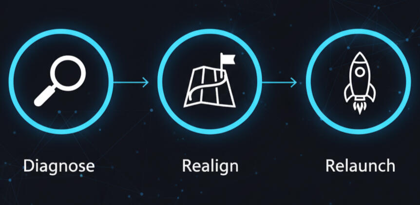We use a proven 3-step process to take your project from chaos to clarity. First, we Diagnose the root causes. Next, we Realign your team with an actionable roadmap. Finally, we guide the Relaunch to ensure a successful delivery.
